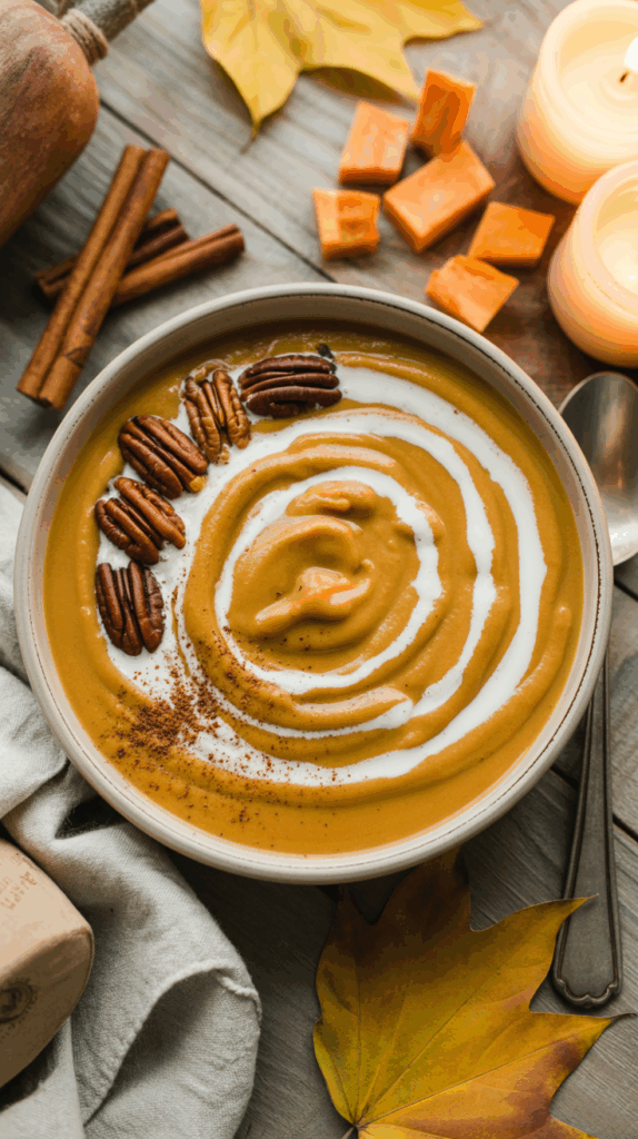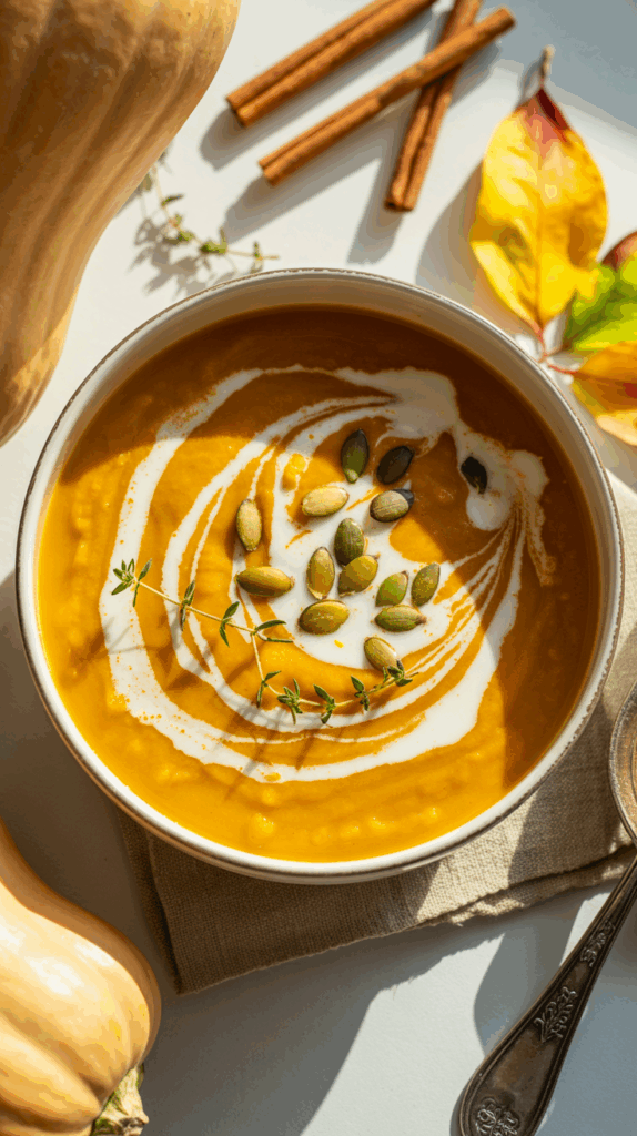 It’s cozy yet elegant — perfect for Thanksgiving or any chilly weeknight. A drizzle of cream and sprinkle of toasted seeds make it restaurant-worthy.
