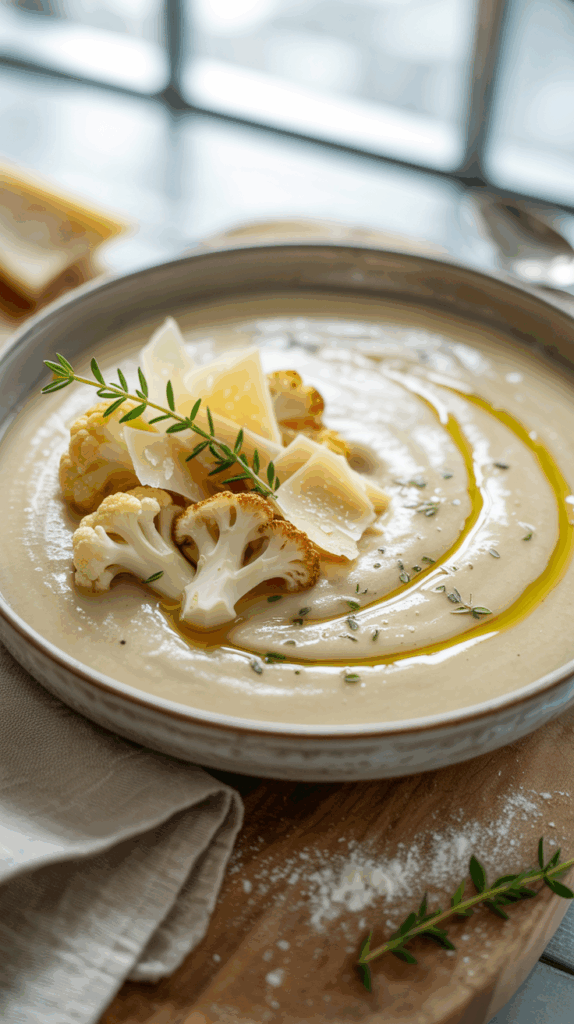 Blend until silky smooth, then stir in cream, nutmeg, and adjust seasoning.