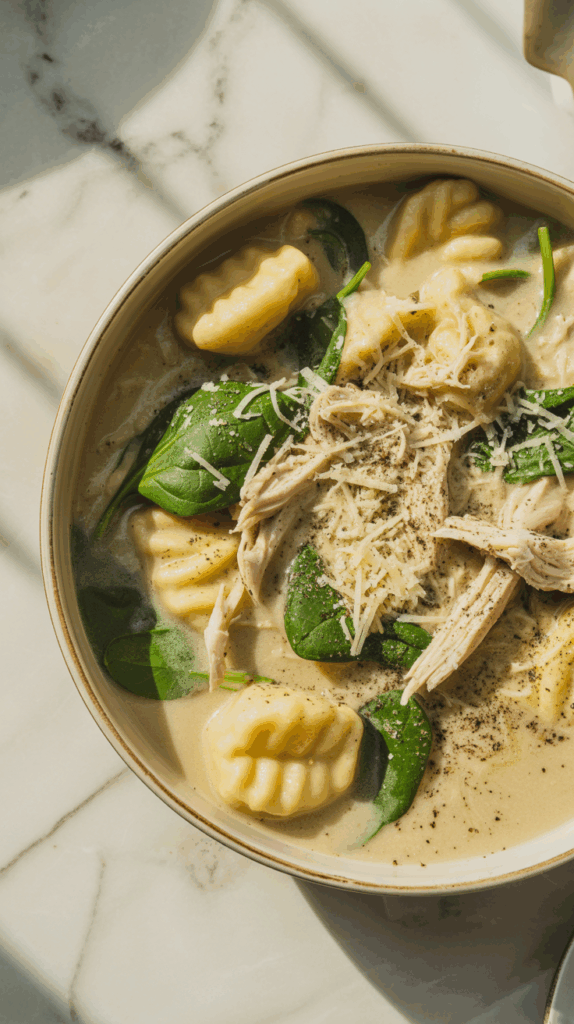 Gnocchi — Italian potato dumplings — date back to the 16th century and are used in soups across Italy. The American chicken-gnocchi version became popular through restaurant chains, combining Italian tradition with creamy comfort. It’s now one of the most pinned and re-created soup recipes every fall — thanks to its quick prep and rich flavor.