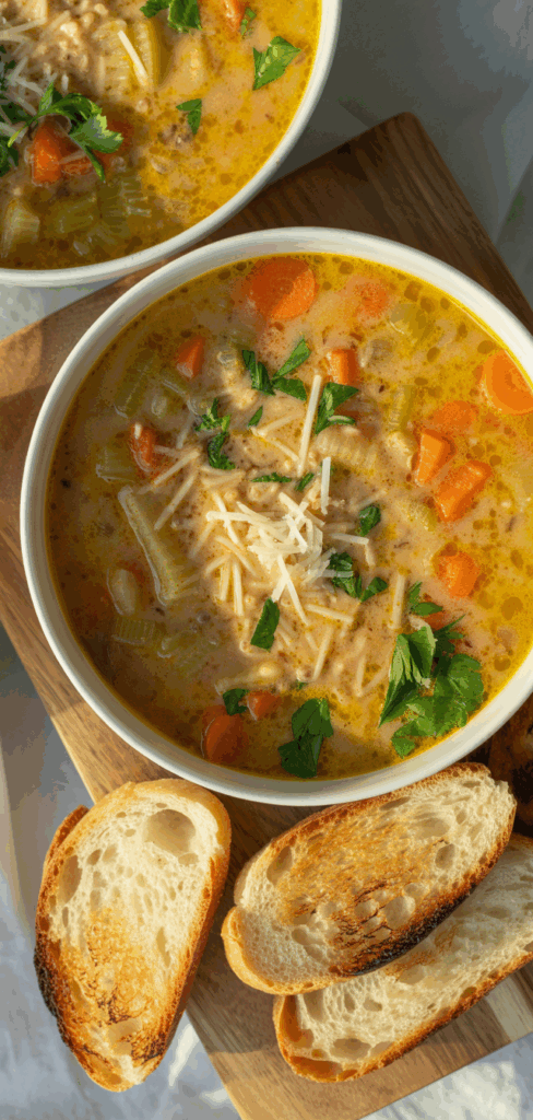 Nicknamed “Italian penicillin” for its immune-boosting properties, this soup combines classic Mediterranean ingredients — lemon, garlic, olive oil, and herbs — with the heartiness of chicken soup.