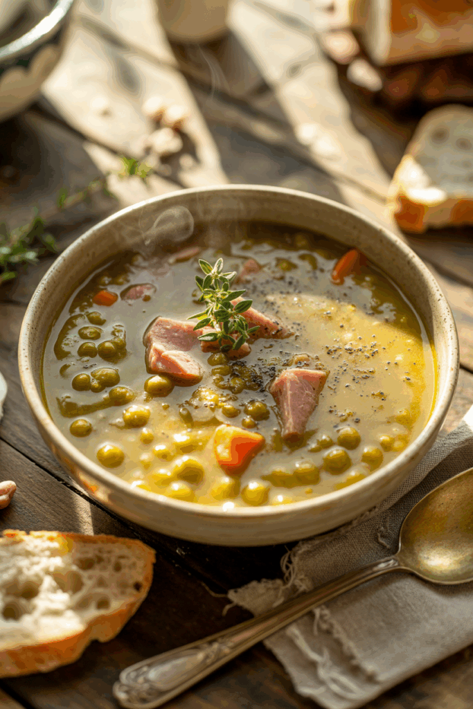 Split pea soup has roots in ancient Europe, where peas were a staple among peasants for their affordability and nutrition. The version we know today — with ham or ham bone — evolved in England and later became an American comfort food. It’s traditionally made after holidays like Easter or Christmas, when leftover ham adds smoky depth.