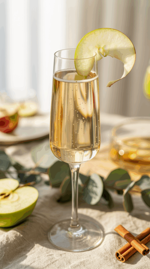 - Garnish with an apple slice on the rim or drop in a cinnamon stick. Serve immediately and enjoy the bubbles.