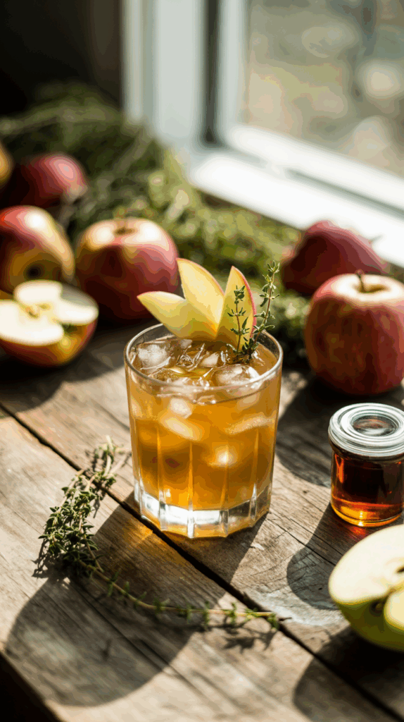 - Garnish: thyme sprig, apple slice, or cinnamon stick